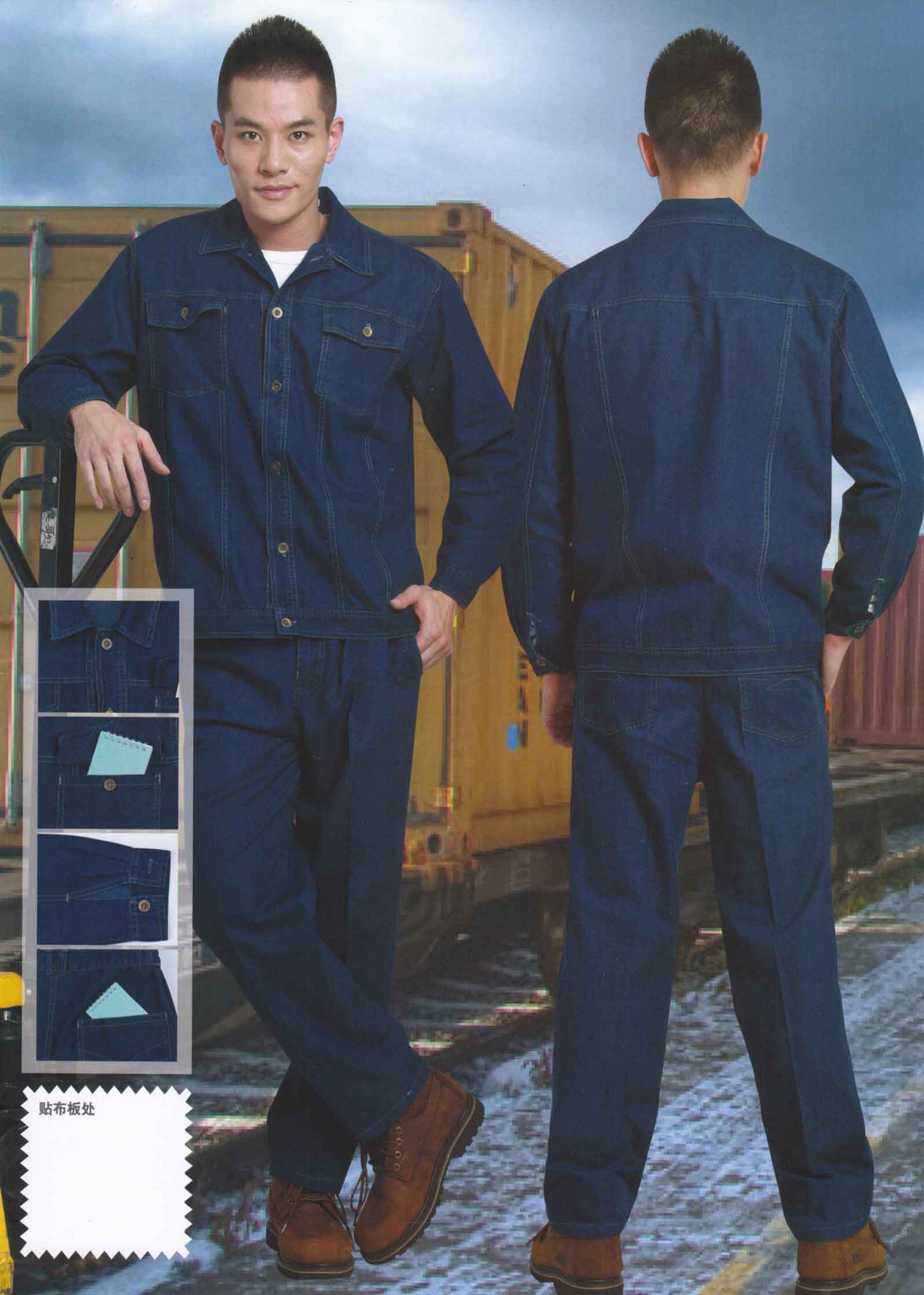纯棉牛仔工作服男女工作服定制 春秋季工服厂服19064款 春秋季工服厂服19062款