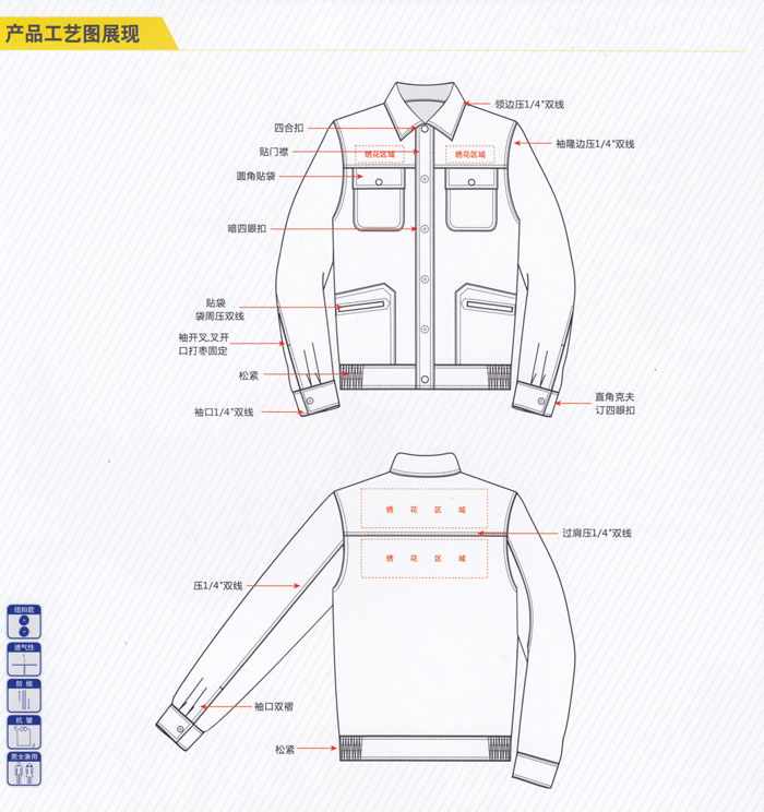 现货长袖夹克工程汽修工地服套装 春秋季工服厂服19056款 夹克男女工装加厚款