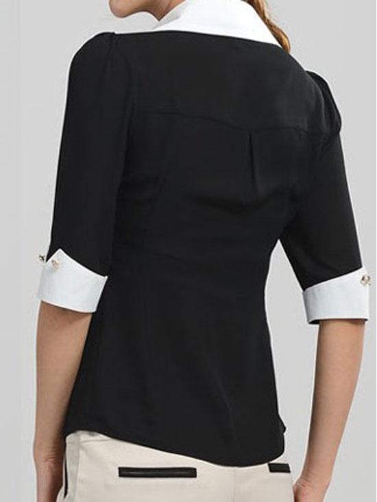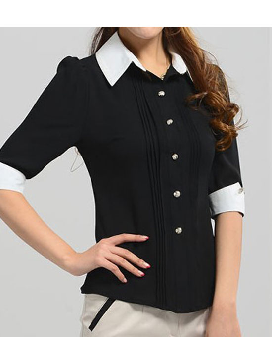 黑色中袖衬衣 黑色短袖衬衣 女式白色短袖衬衣