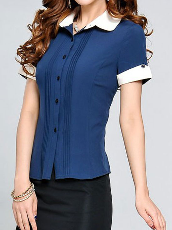 新款职业装衬衫修身时尚OL气质工作服 新款职业长袖衬衫 黑色中袖衬衣 时尚通勤职业风琴百褶边长袖女衬衫 短袖衬衣
