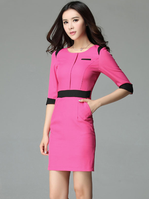 秋装OL通勤修身连衣裙 中袖圆领婚纱摄影美容院工作服职业装 秋冬西装裤正装裤 秋季中袖时尚Ol衬衫式连衣裙摄影婚纱 秋冬新装百搭基本库西装裤职业裤